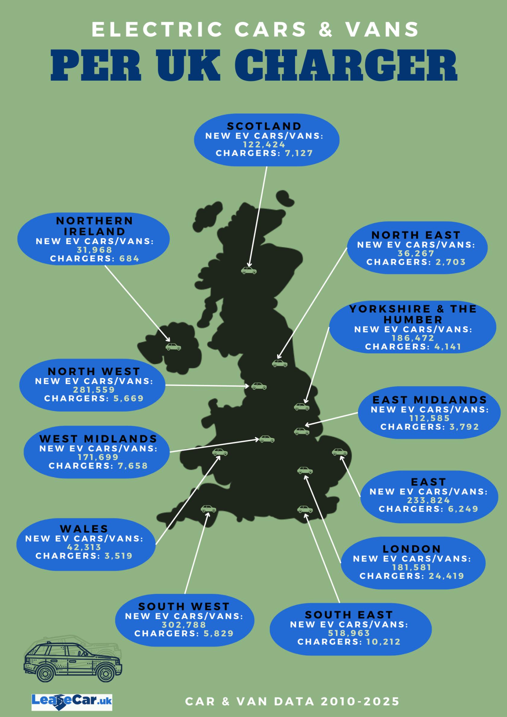 LeaseCar has uncovered key trends in the UK's electric vehicle (EV) landscape, highlighting a significant imbalance in charging infrastructure and a notable shift in the most popular EV models for both cars and vans.