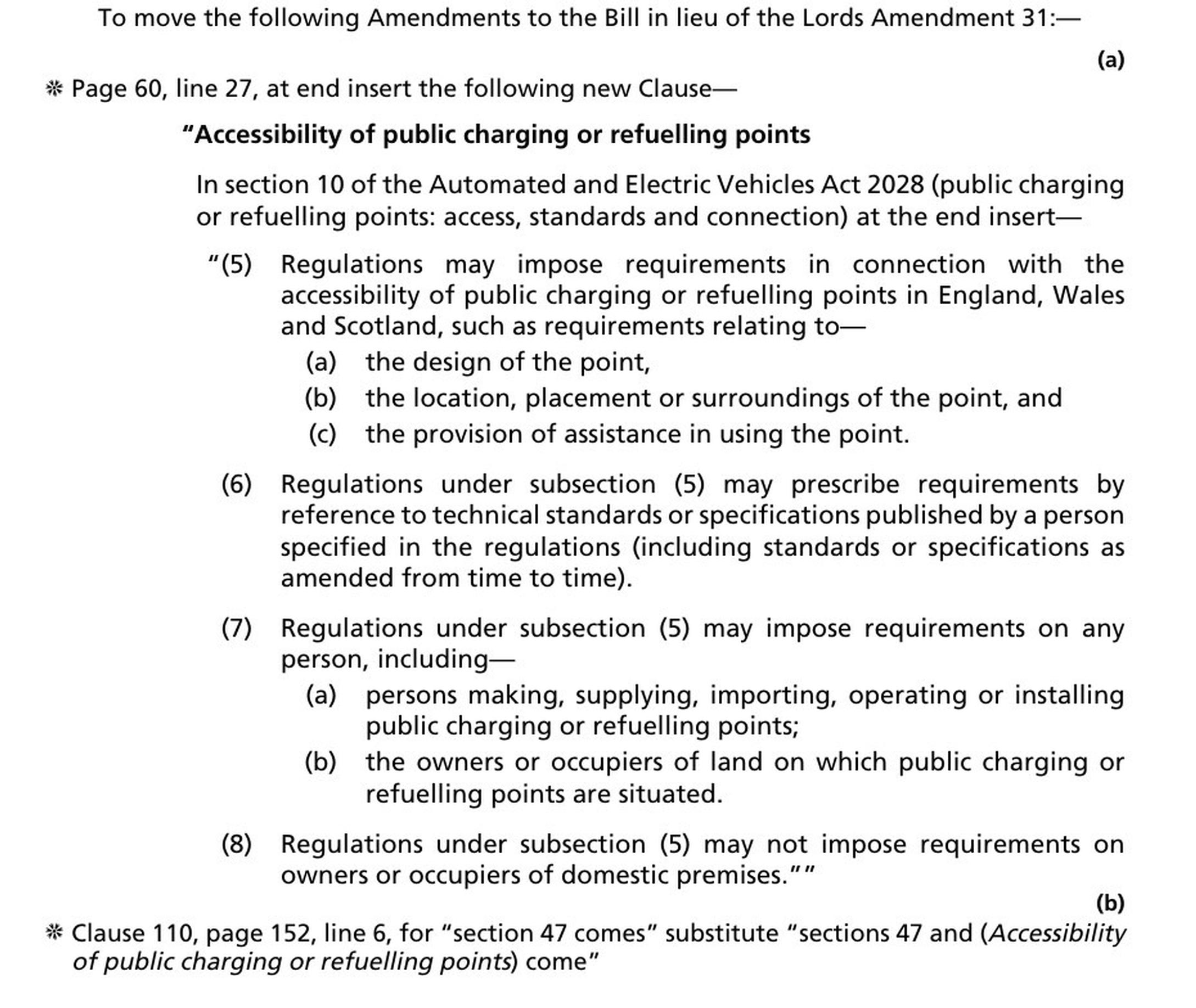 A new amendment made to the Planning and Infrastructure Bill will help ensure that disabled people are not left behind by the transition to EVs. The amendment gives the government powers to mandate public charging standards by law if the accessibility of public chargers does not improve.