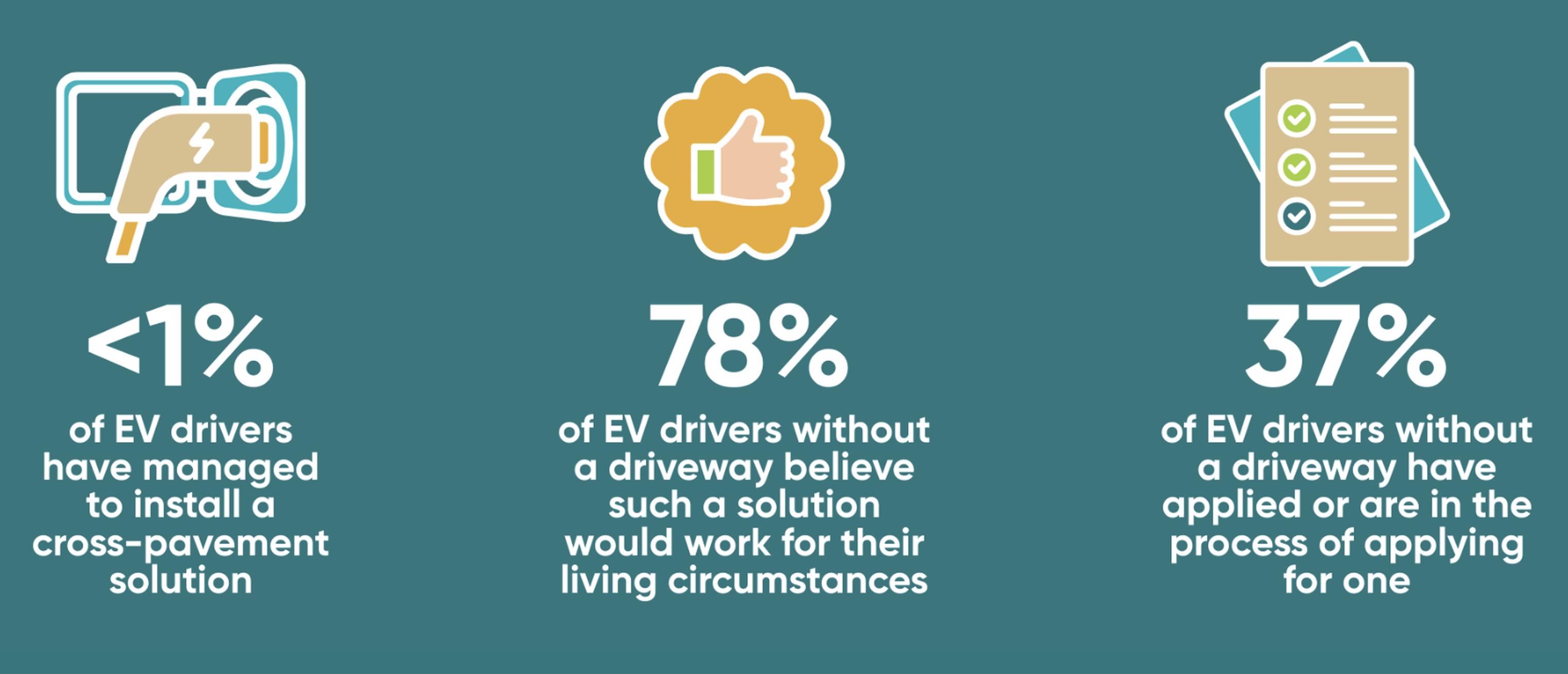 The EV association’s latest driver survey is focused specifically on cross-pavement charging solutions. The results show overwhelming unmet demand for technologies that allow drivers to charge safely from home, even when they park on the street.