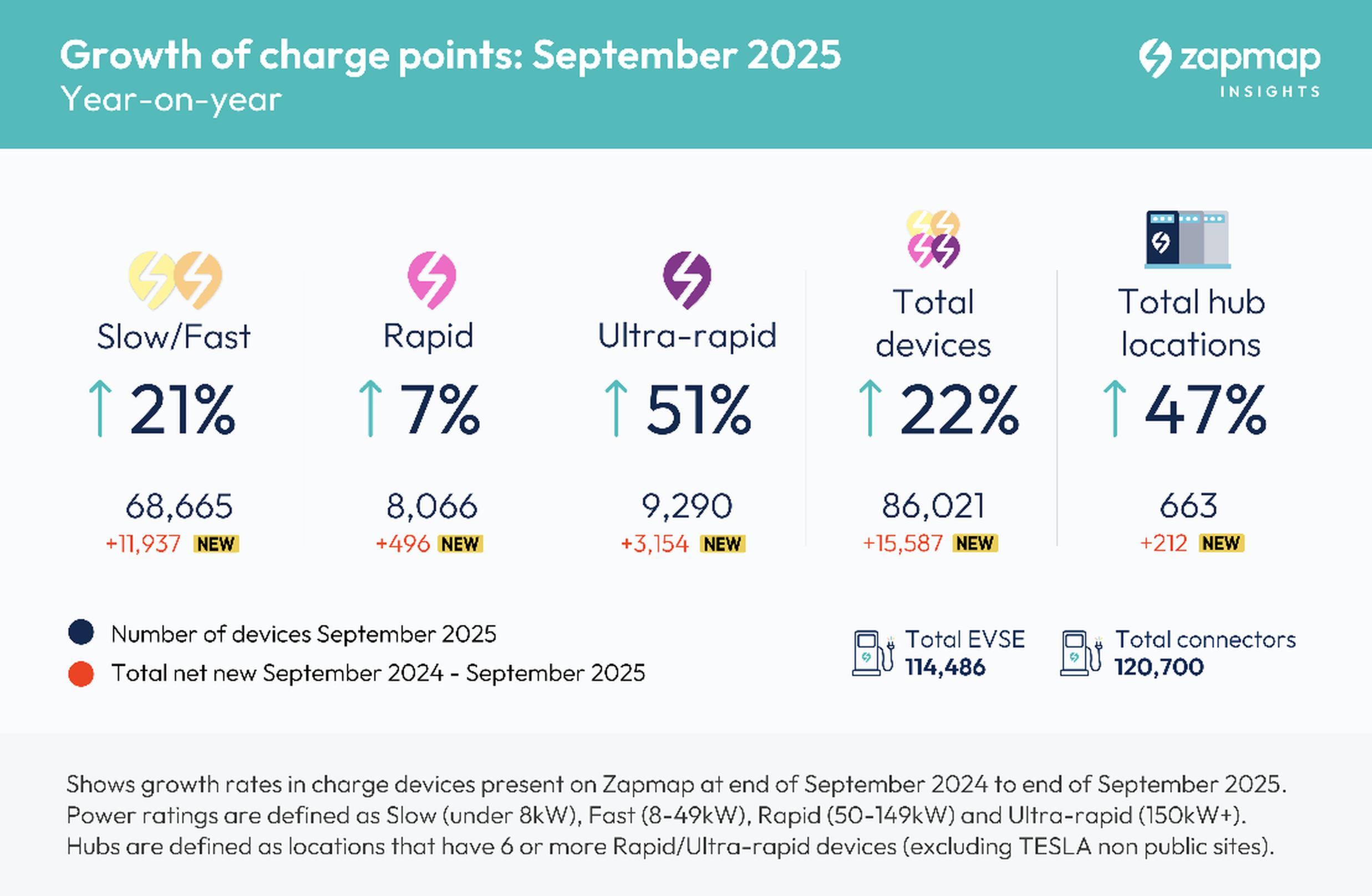 Almost 4,000 new electric chargepoints were installed across Britain during the third quarter of 2025, new figures from Zapmap reveal.