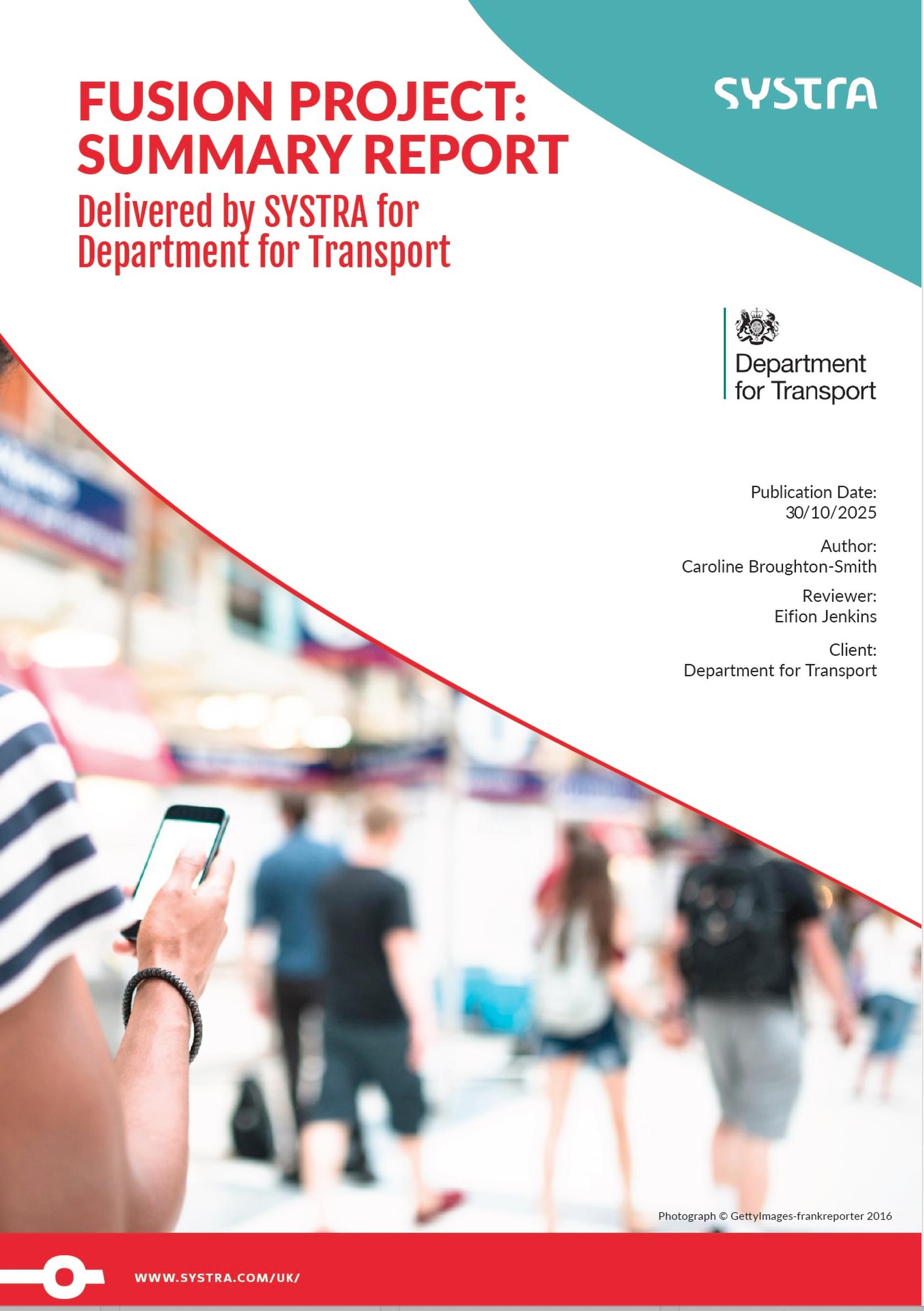 The Department for Transport (DfT) has published an assessment of a new approach of generating travel insights by combining smartphone sensor-derived data (‘big’ data) and specific online user surveys (‘deep’ data). The pilot applications of the Fusion of User Surveys and Integrated Online Navigation (FUSION) project was commissioned from SYSTRA alongside project partners TravelAi and Yonder Data Solutions (YDS).
