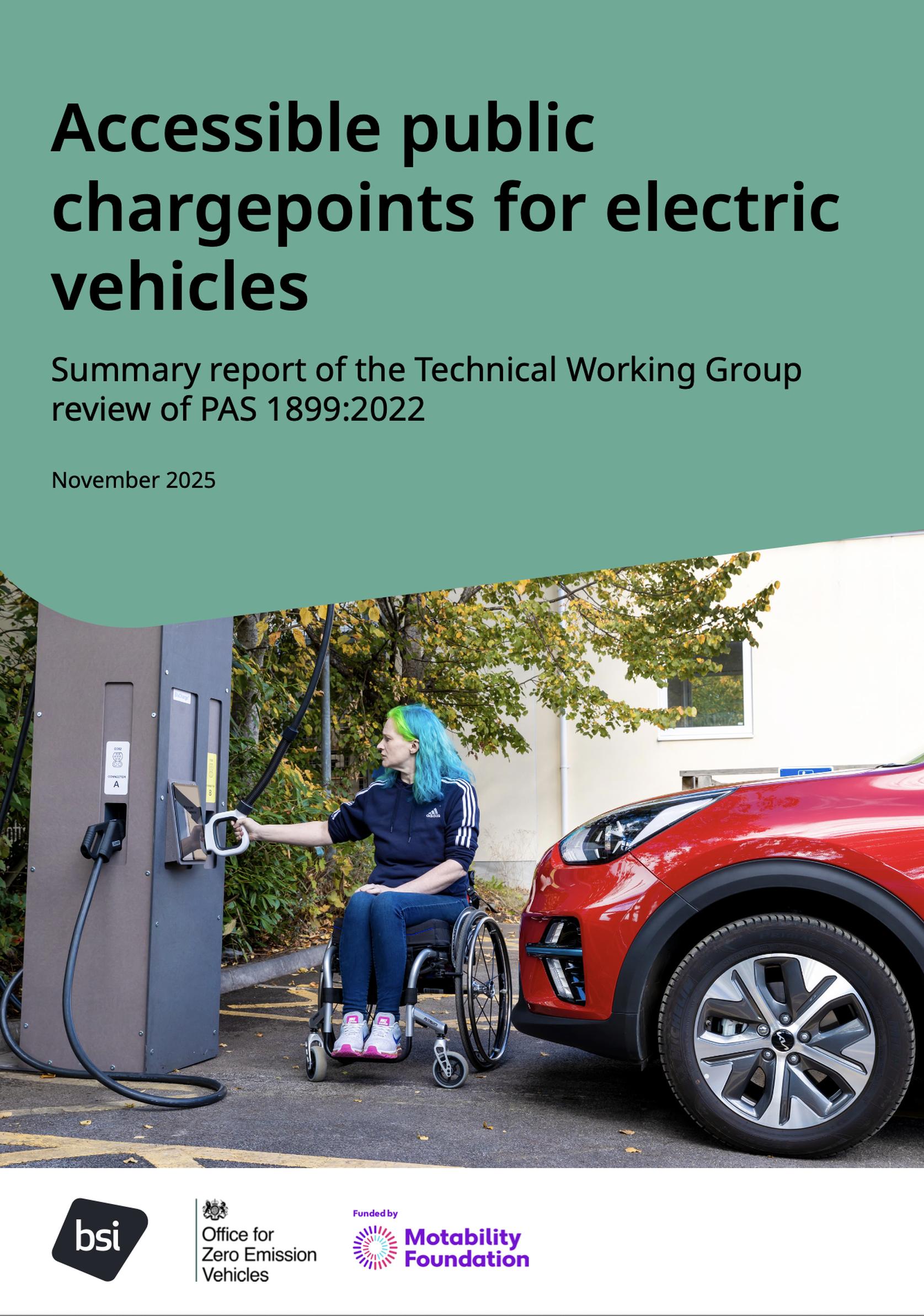 The BSI has published a report that recommends revisions to the existing UK standard for electric vehicle chargepoints – PAS 1899:2022 – to make it easier to deliver accessible charging that meets disabled drivers’ needs.