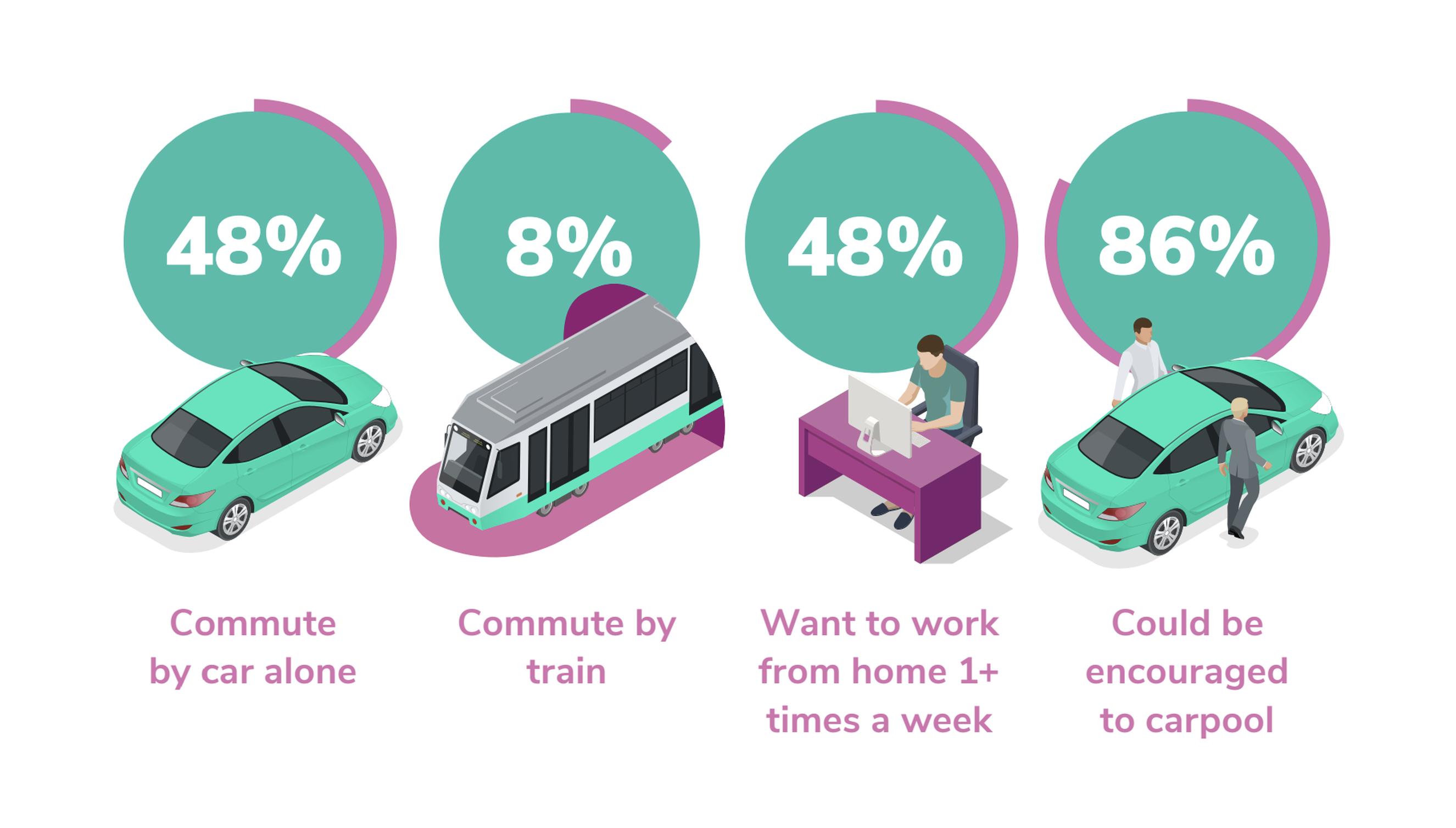 When including all fuel types – petrol, diesel, hybrid and electric – the total number of commuters driving alone has risen to 48%, up from 45% last year. While still below the pre-pandemic figure of 52%, this increase clearly shows that more people are returning to the car as their primary mode of commuting.