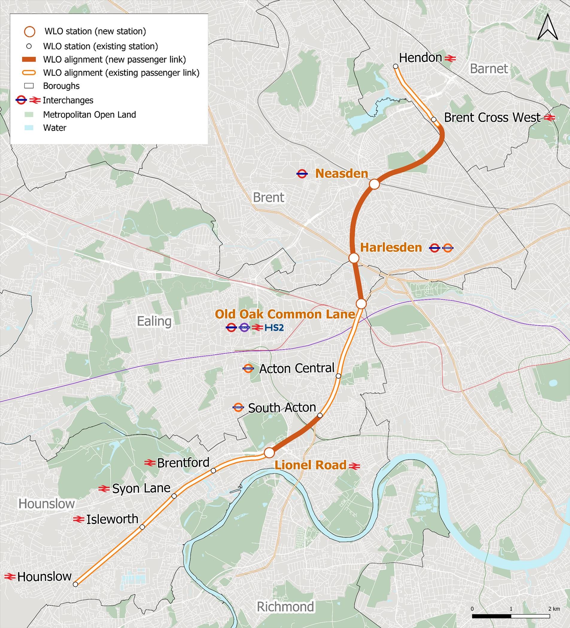 The proposed Hendon to Hounslow line, described as the West London Orbital, would create a new passenger link on under-used freight lines connecting with town centres, employment hubs and existing and future transport links.