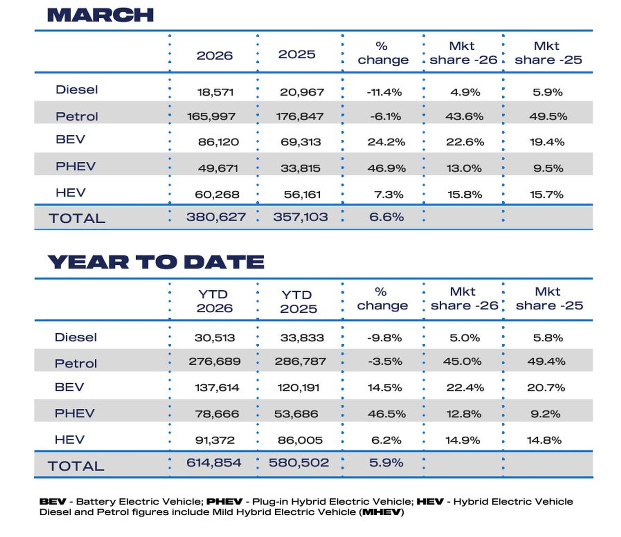 “Battery electric vehicles continued to strengthen their position, with BEV registrations having a record month, up 24.2% in March, accounting for 22.6% of the market. We are seeing some indication that the war in Iran has driven consumer demand for BEV’s.”
