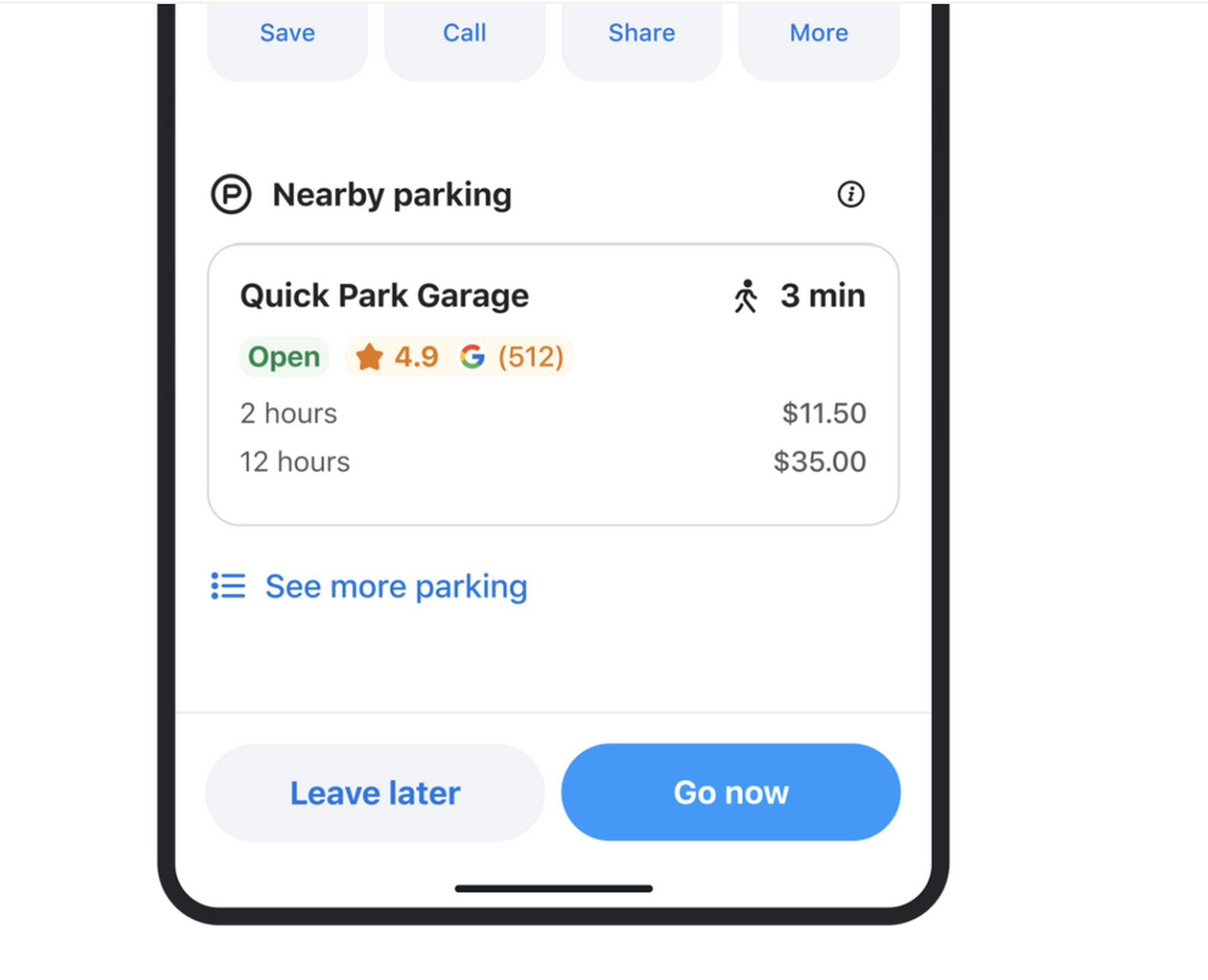 The new in-app feature will offer information about parking garages, including costs, whether it is a covered car park, if it is wheelchair accessible, valet options and if electric vehicle charging stations available.