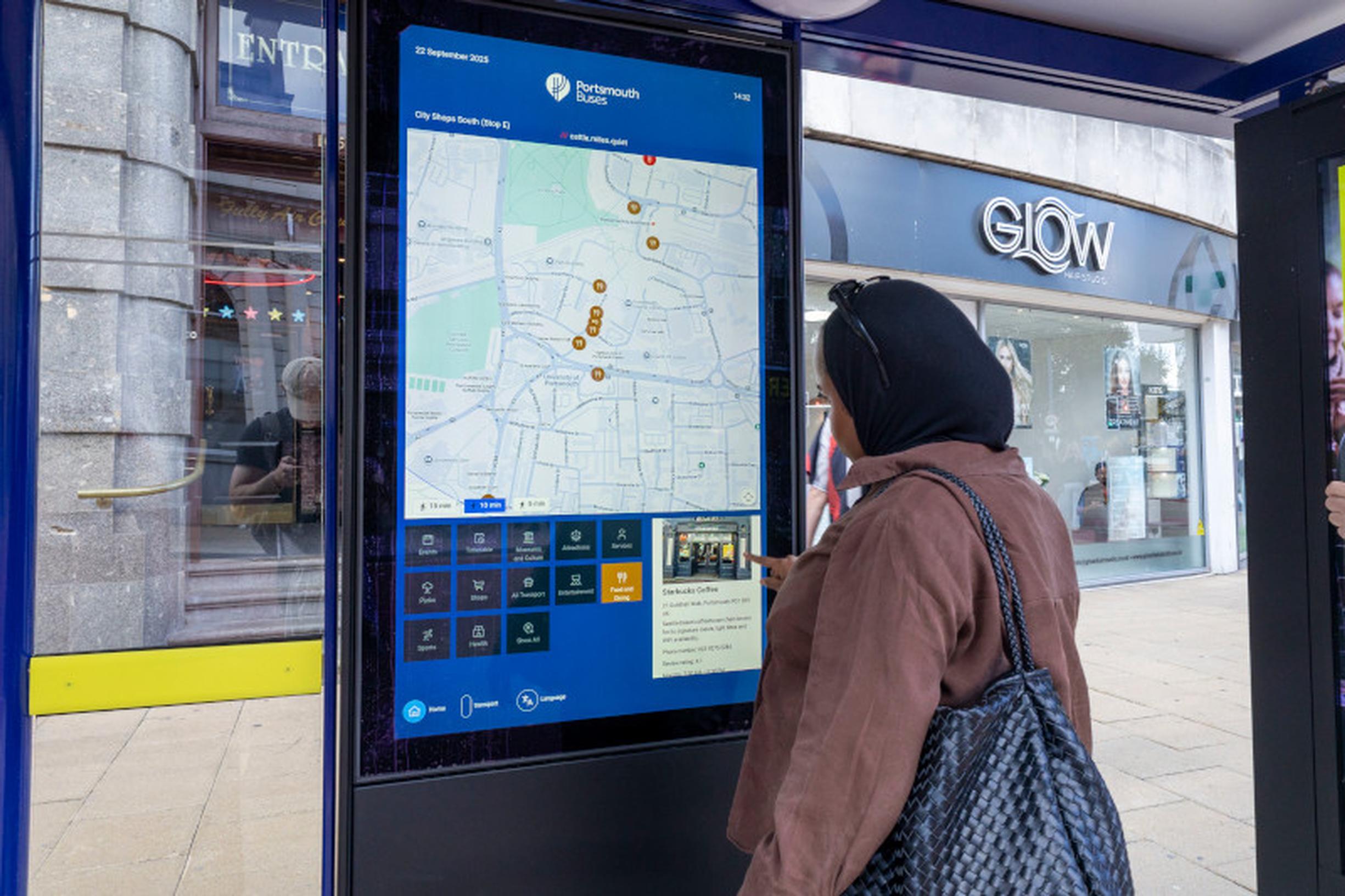 There is a bus stop on Commercial Road in Portsmouth that could easily belong in a Scandinavian city. It features a Living Roof, real-time departure information, free Wi-Fi, a touch-screen wayfinding display, wooden seating with ergonomic armrests, motion-activated lighting, and a defibrillator registered on the national emergency network. It is clean, well-maintained, and modern.