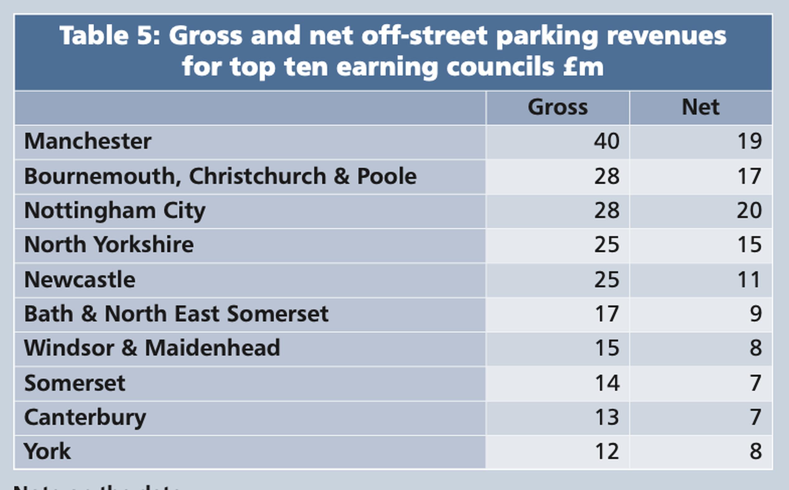 While the London boroughs dominate on-street parking revenue, the top off-street parking revenue generators are a very varied mix of authorities (Table 5). Ranging from more tourist locations to major cities. A number of local authorities have disposed of their off-street parking assets due to the cost of maintenance and increased land values making alternative uses more attractive.