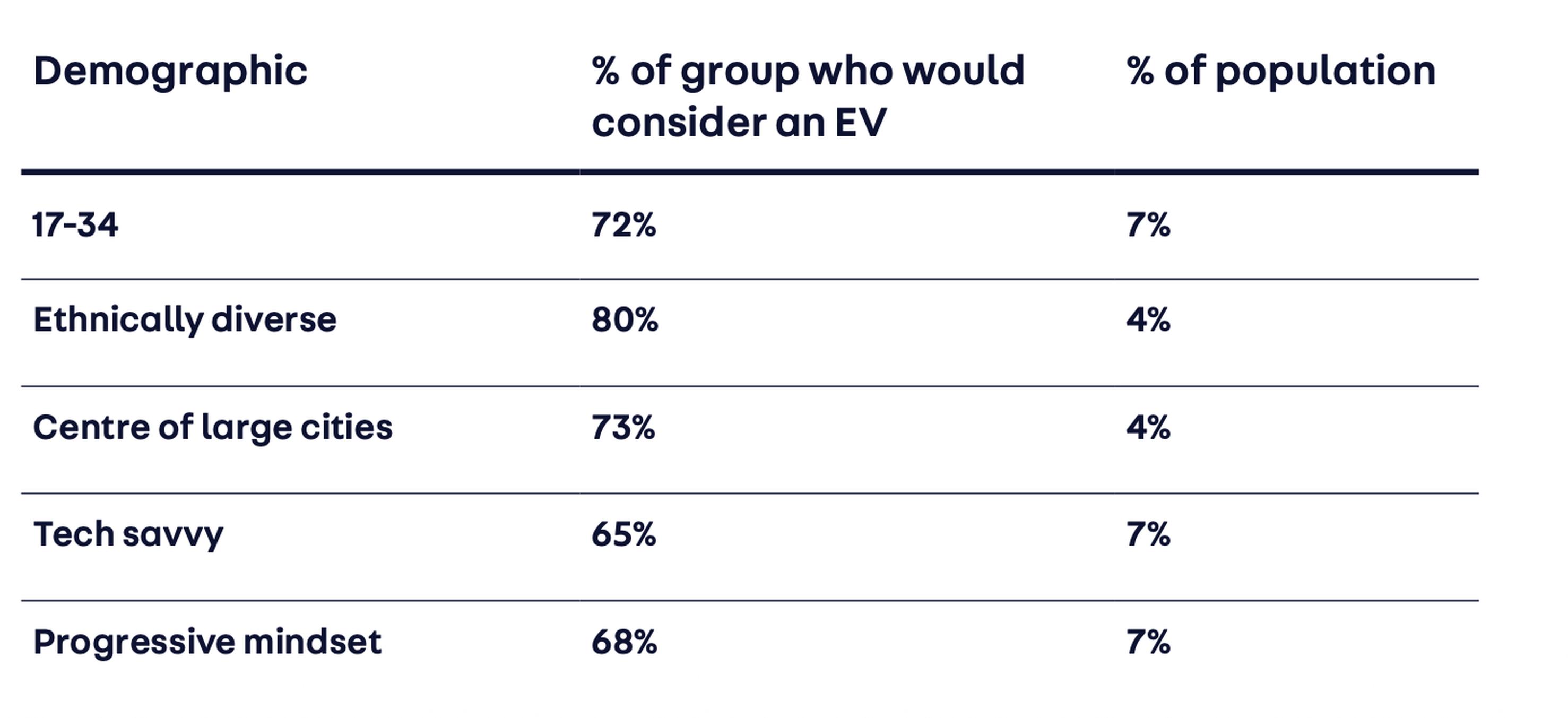 Research found that certain demographics within the lower household income group were more likely to consider electric, for example younger people and those living in urban environments.